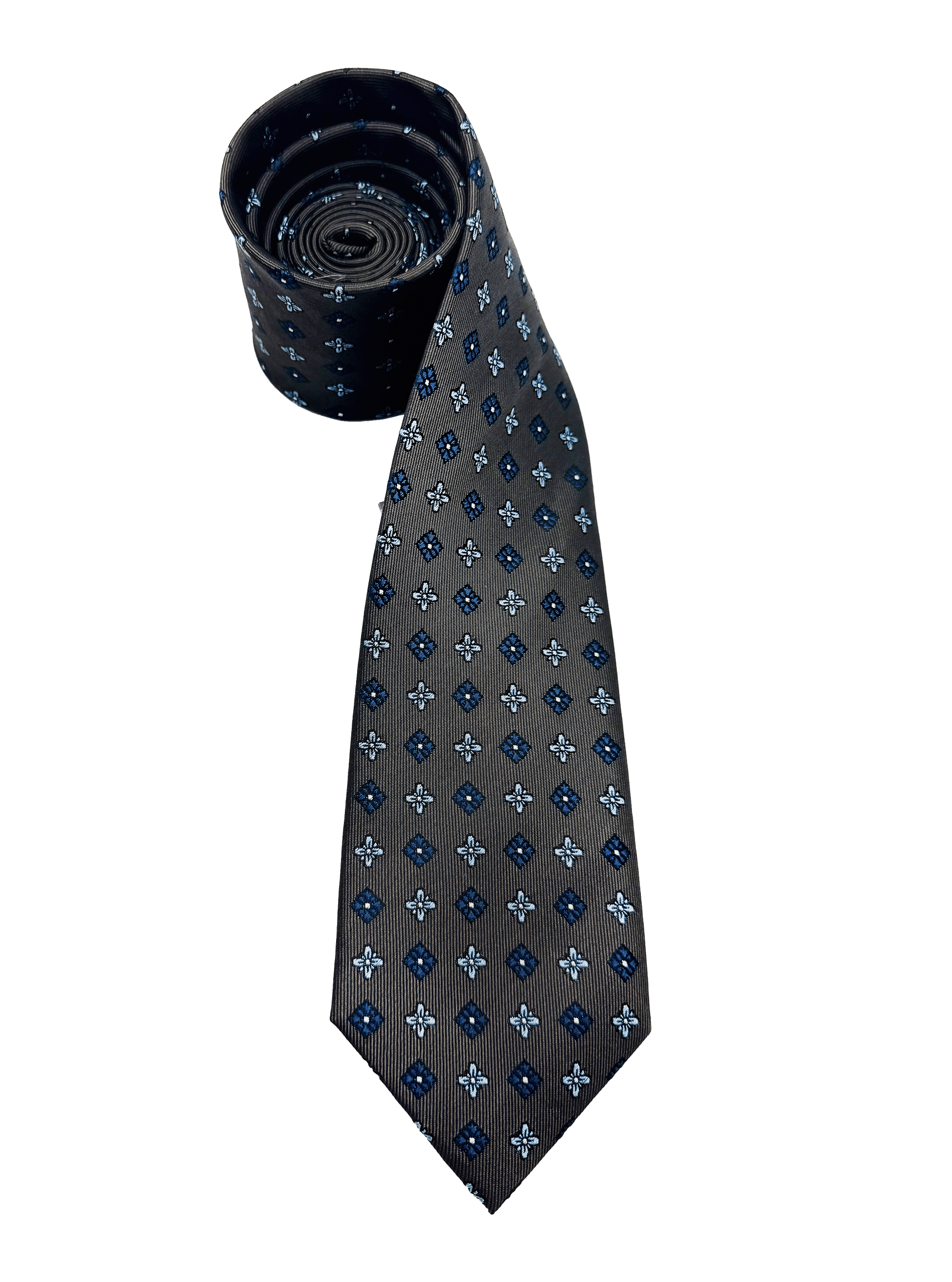Navy Brown Tile Print Silk Tie