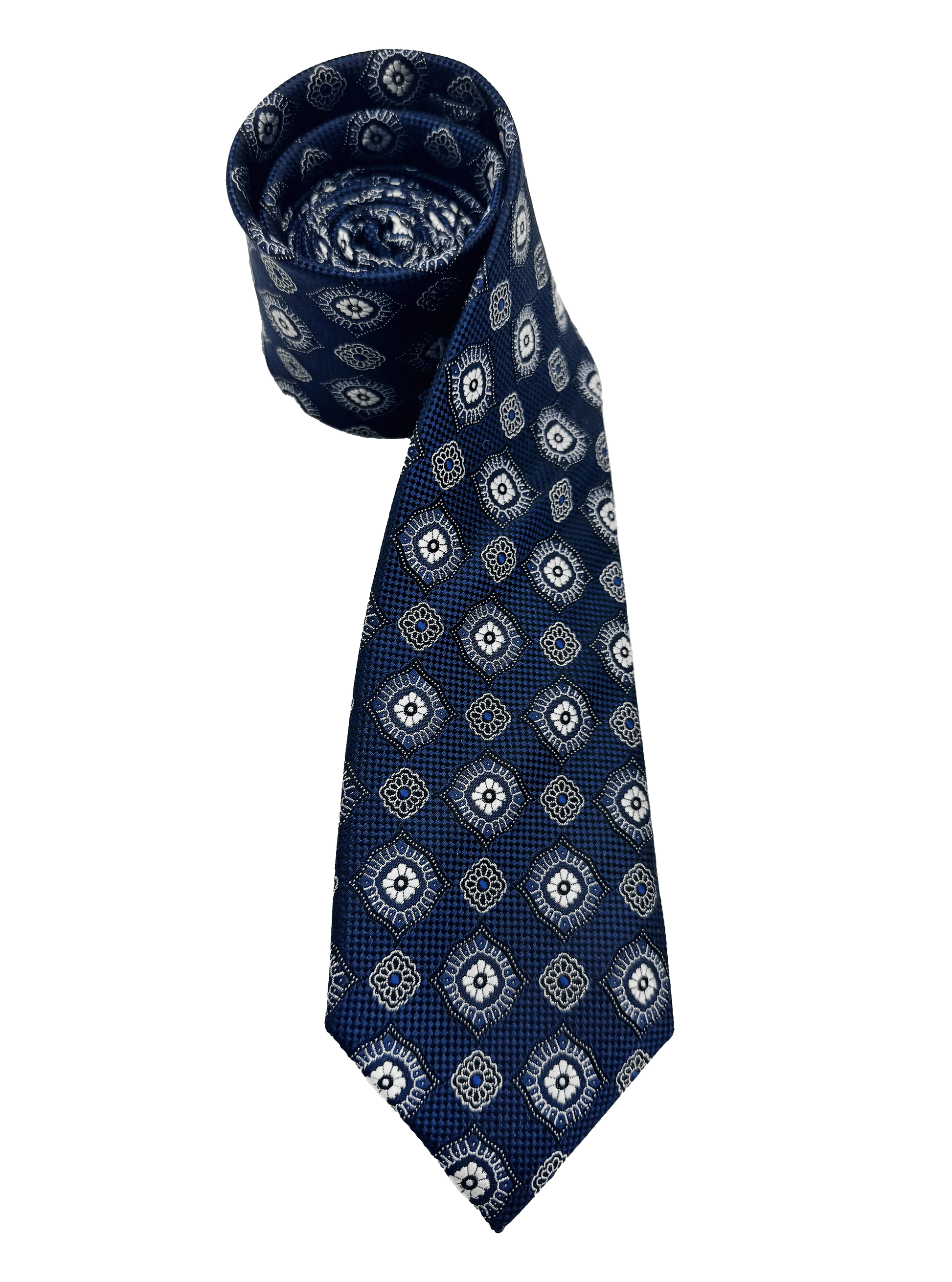 Navy Tile Print Silk Tie
