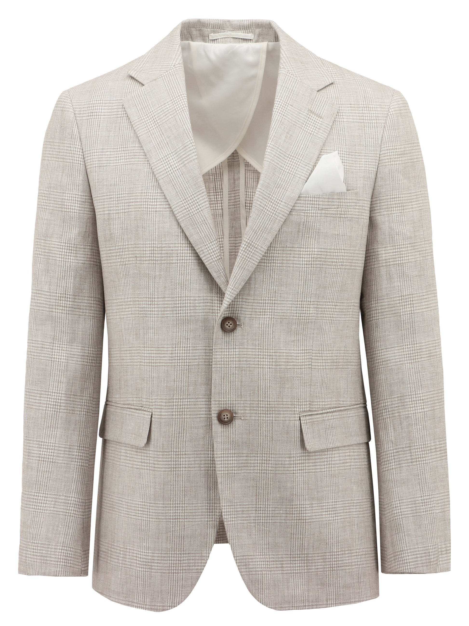 Prato Beige Glen Check Linen Blend Sports Jacket