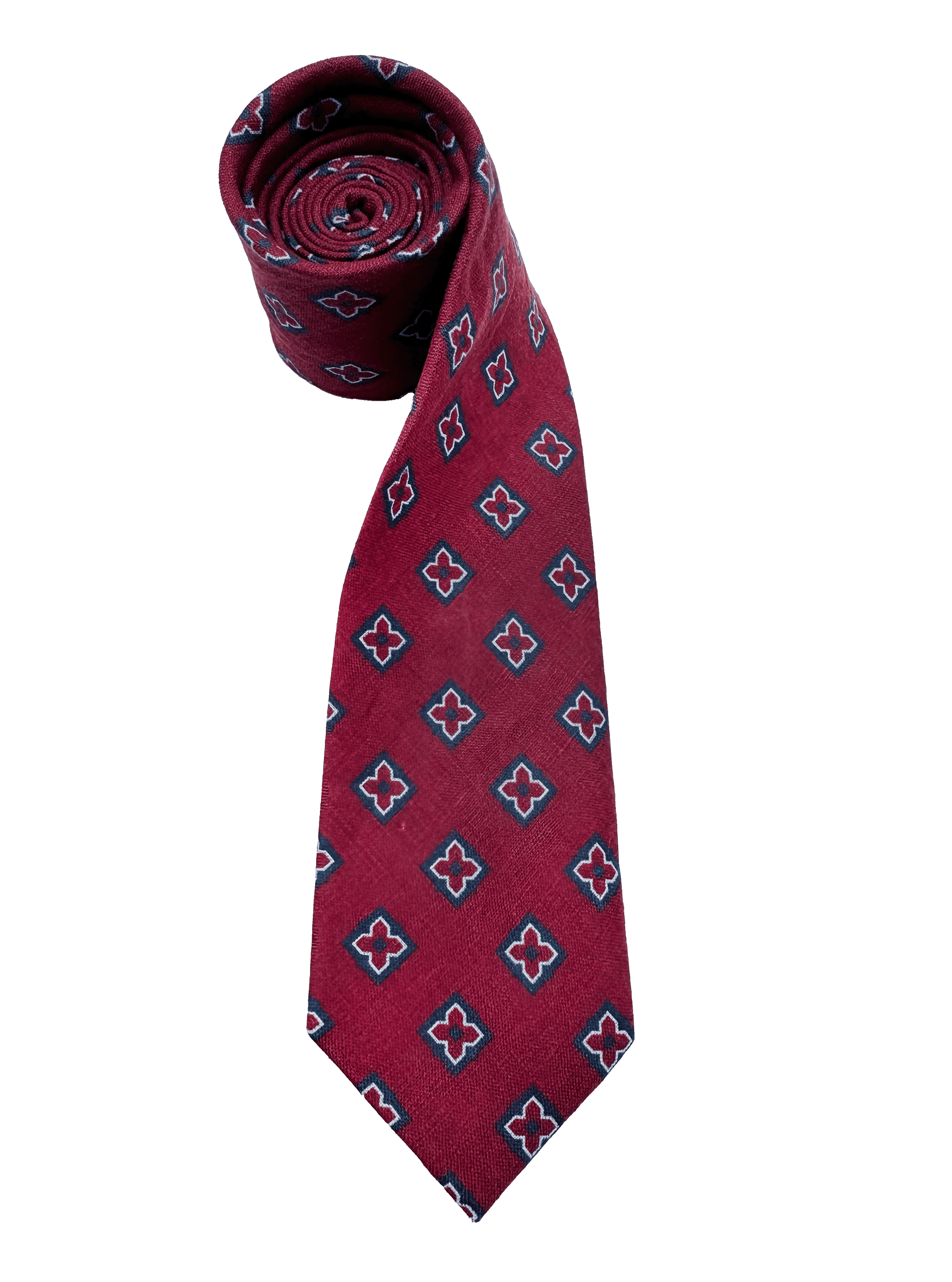 Red Tile Print Linen Tie