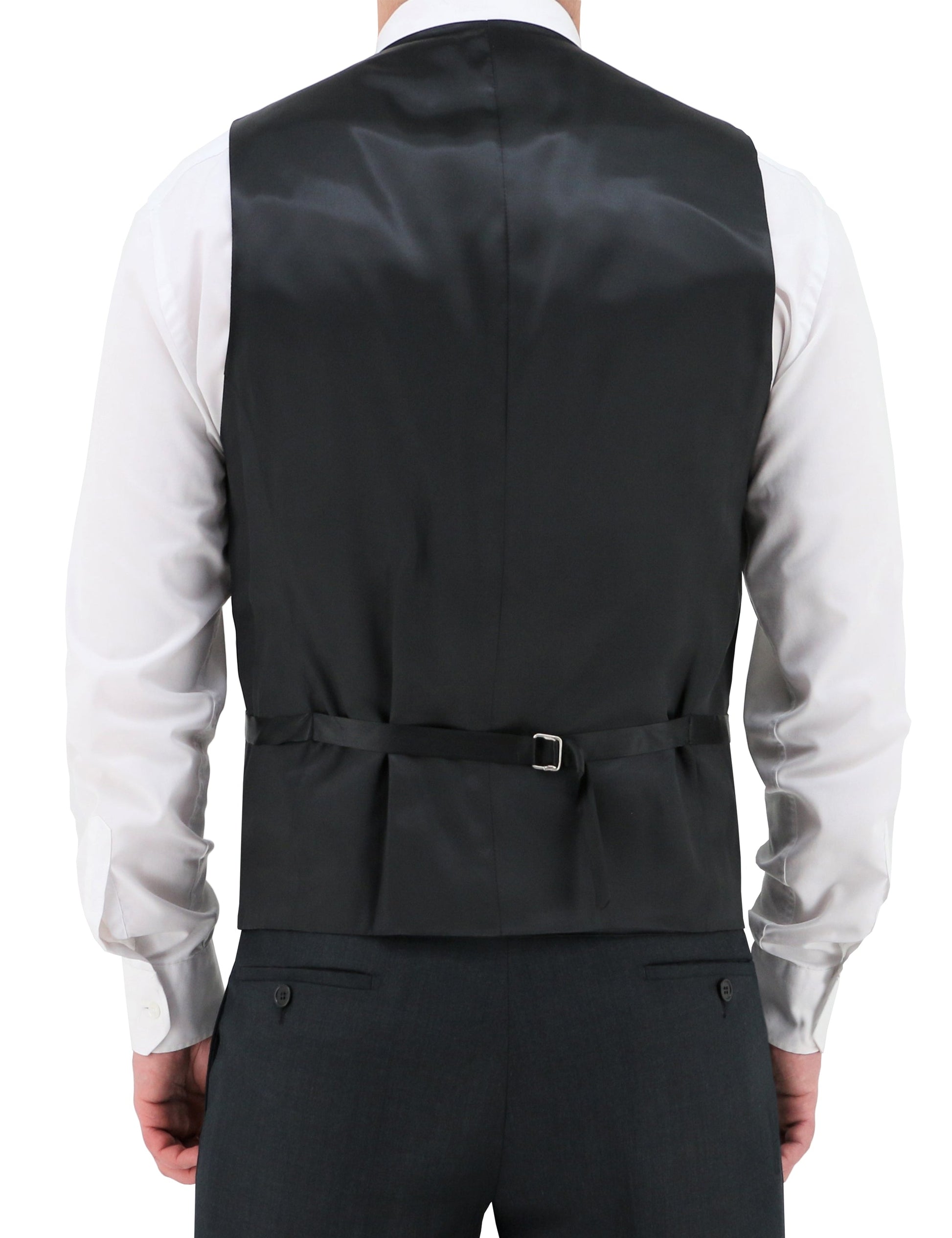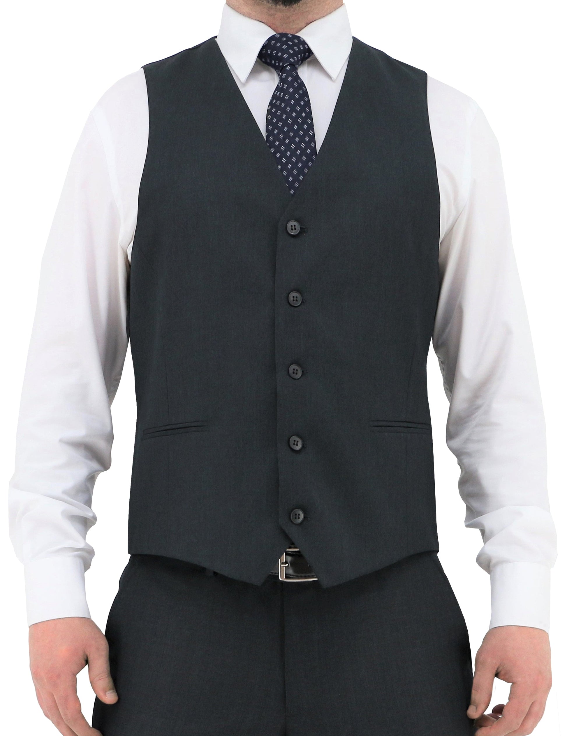 When you're tired of wearing black, but not ready for blue, you probably need charcoal. This no-frills waistcoat features a six button closure and a buckle on the back so you can adjust for your own comfort.